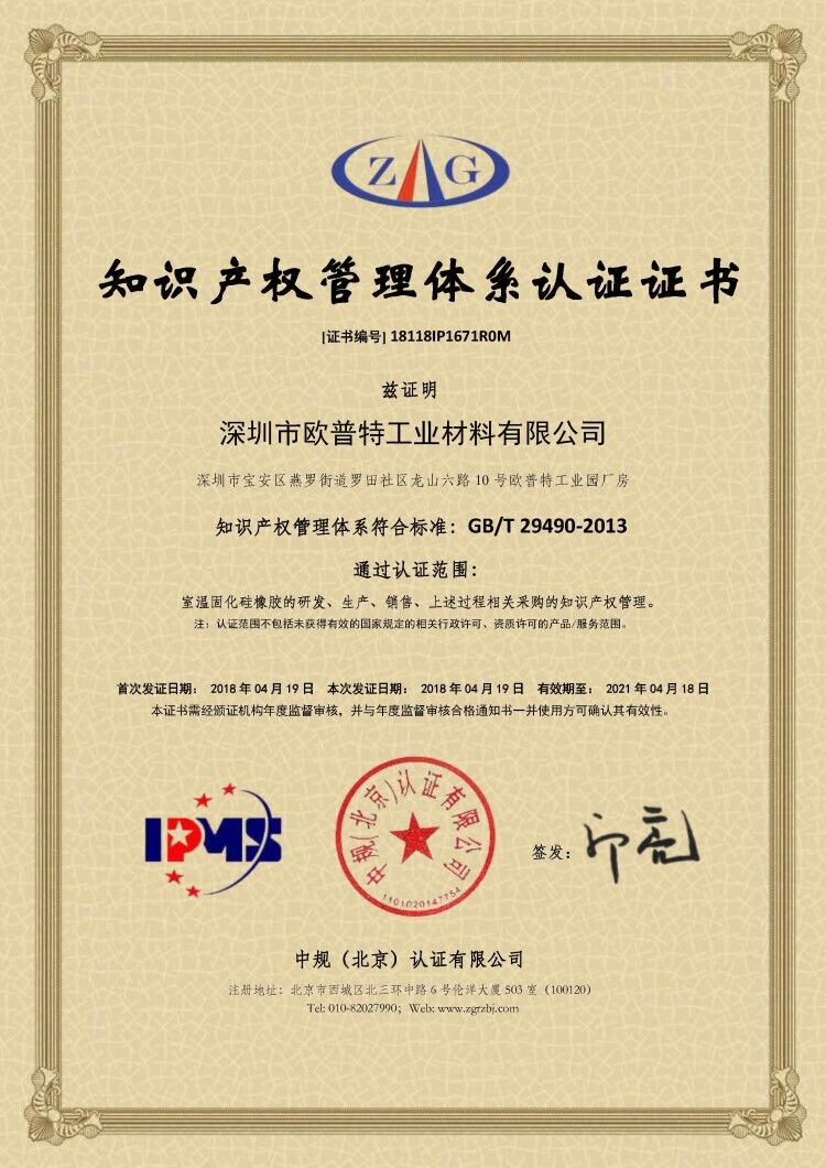 2018年4月19日,歐普特正式獲得由中規(guī)(北京)認(rèn)證有限公司頒發(fā)的"知識(shí)產(chǎn)權(quán)管理體系認(rèn)證證書(shū)”,證書(shū)的取得標(biāo)志著我司的知識(shí)產(chǎn)權(quán)工作邁上了新的臺(tái)階。2018年,歐普特走在眾多企業(yè)前端,順利完成了知識(shí)產(chǎn)權(quán)管理體系導(dǎo)入工作,使公司的知識(shí)產(chǎn)權(quán)創(chuàng)造、運(yùn)用、保護(hù)和管理水平得到了切實(shí)規(guī)范和提升;且引入的知識(shí)產(chǎn)權(quán)風(fēng)險(xiǎn)預(yù)警和防控程序,從而建立內(nèi)部研發(fā)到外部銷售的全線防控。通過(guò)知識(shí)產(chǎn)權(quán)的運(yùn)營(yíng),持續(xù)提升公司的無(wú)形資產(chǎn)價(jià)值,讓知識(shí)產(chǎn)權(quán)真正成為企業(yè)的核心競(jìng)爭(zhēng)力,使企業(yè)在激烈的競(jìng)爭(zhēng)中占領(lǐng)市場(chǎng)至高點(diǎn),在復(fù)雜的經(jīng)濟(jì)環(huán)境中始終立于不敗之地。