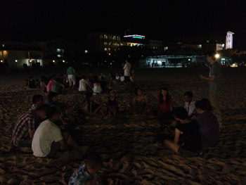 10點(diǎn)半,勾火晚會(huì)結(jié)束了,大家流連忘返,似乎沒(méi)有回房間睡覺(jué)休息意識(shí),于是又組織了"找內(nèi)奸"游戲,這個(gè)游戲深刻的體現(xiàn)了大家的反應(yīng)能力和觀察能力和自我保護(hù)能力,直到凌晨1點(diǎn)左右,大家才依依不舍的回房間休息.