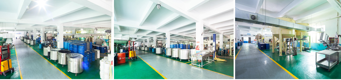 工廠有一系列的反應(yīng),分離,填料處理,粉液捏合,超大行星攪拌,全自動灌裝等先進生產(chǎn)設(shè)備,并專門備有為化學(xué)反應(yīng)放大的中試設(shè)備。